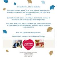 Publiée le 27/01/2026A l'occasion de la présentation de ses voeux, Madame OPSOMER directrice de la résidence du Château de Montjay a convié les familles des résidents pour partager un moment convivial autour de quelques galettes bien chaudes et des couronnes prêtes à être portées ! Ce fut un réel plaisir de partag&e [...] Lire la suite
